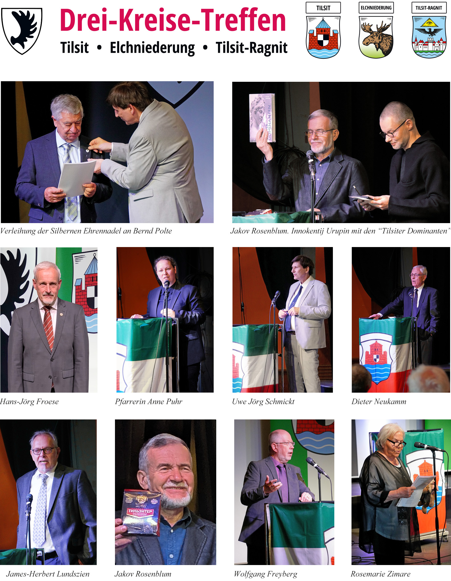 Ein Höhepunkt des „Drei-Kreise-Treffens“ war die Festrede des Autors und Filmemachers Hermann Pölking, der als profunder Kenner der ostpreußischen Geschichte gilt. In seiner Rede, bewusst jenseits jeder Heimatverklärung, schilderte er seine persönliche Beziehung zu Ostpreußen und dem Memelland. Er berichtete, wie seine Beschäftigung mit dieser Sehnsuchtslandschaft über die Literatur Johannes Bobrowskis begann und zeigte auf, welche Bedeutung für ihn jene Orte haben, an denen die Vergangenheit noch spürbar ist. Er spannte einen Bogen von der wechselvollen Geschichte Ostpreußens bis in die Gegenwart und unterstrich die bleibende Bedeutung von Erinnerungskultur und Geschichtsbewusstsein.